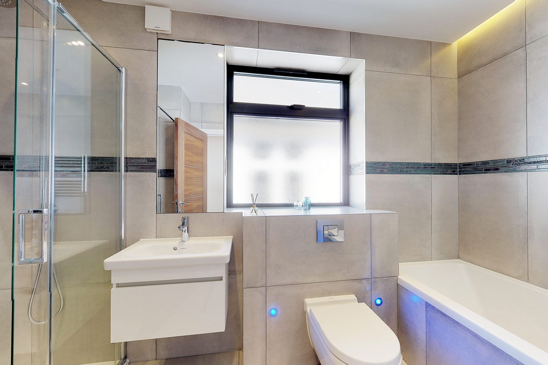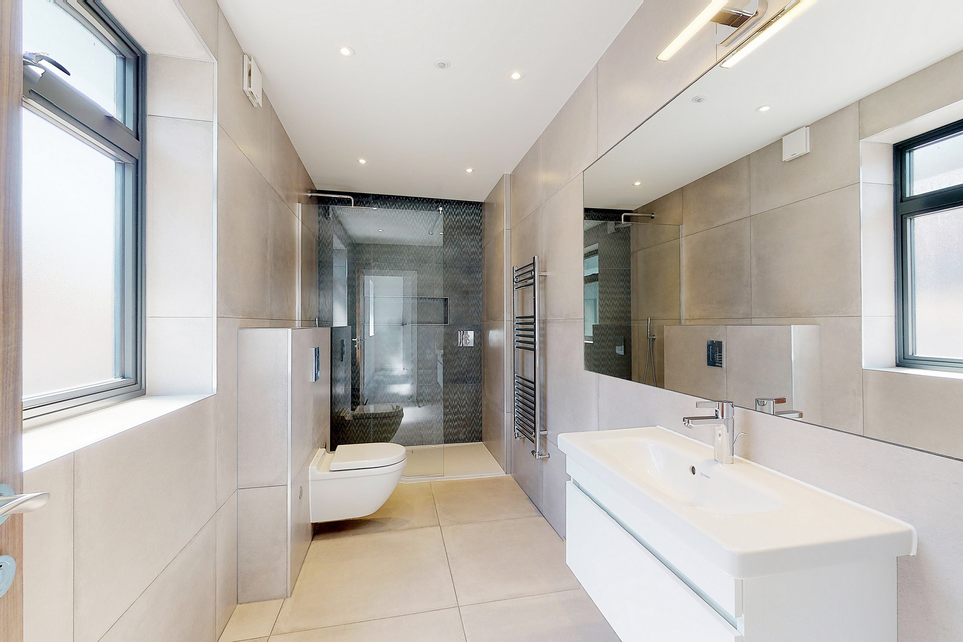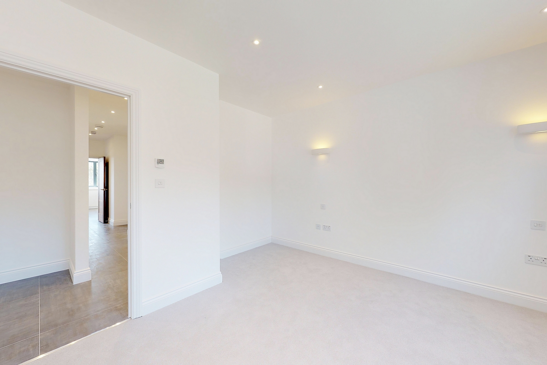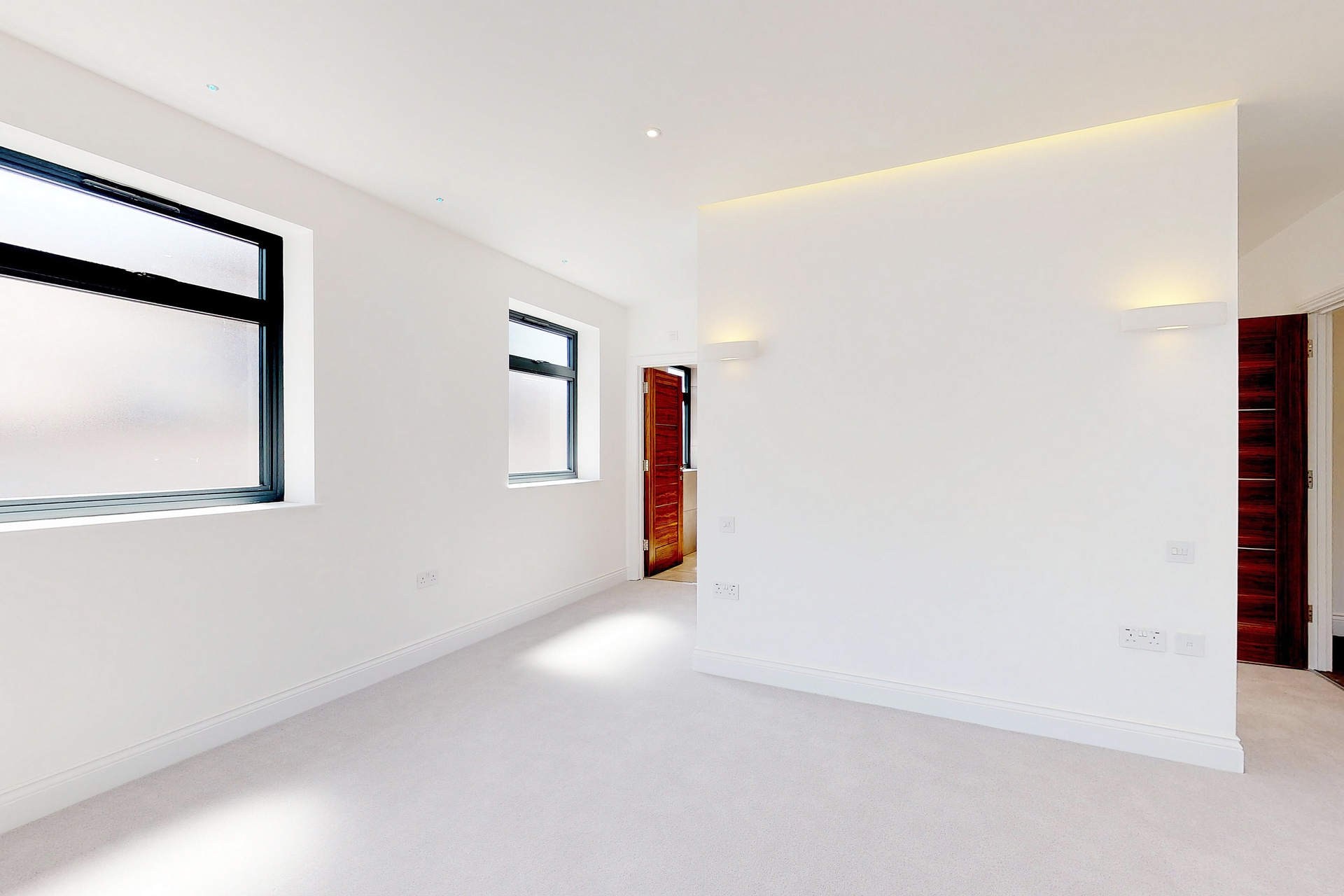 Accommodation comprises a generously sized primary bedroom with walk through wardrobe and contemporary ensuite bathroom, second double bedroom, four piece family bathroom, fully open plan kitchen with state of the art integrated Siemens appliances and separate utility room.